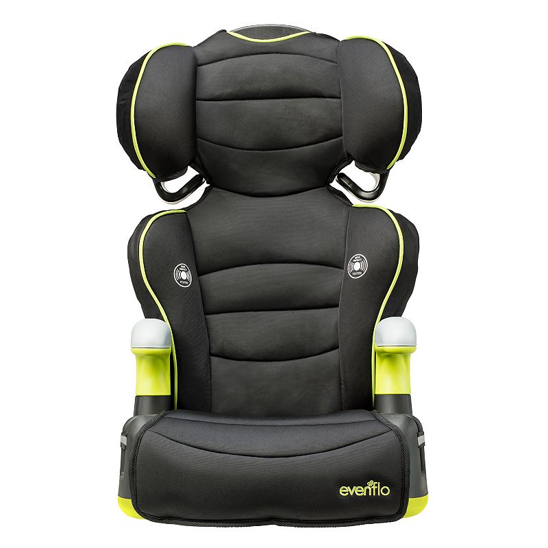Get your kiddo excited about sitting in a booster seat with this Evenflo 2-in-1 high-back booster car seat, featuring an adjustable back that keeps the side and head support in proper position